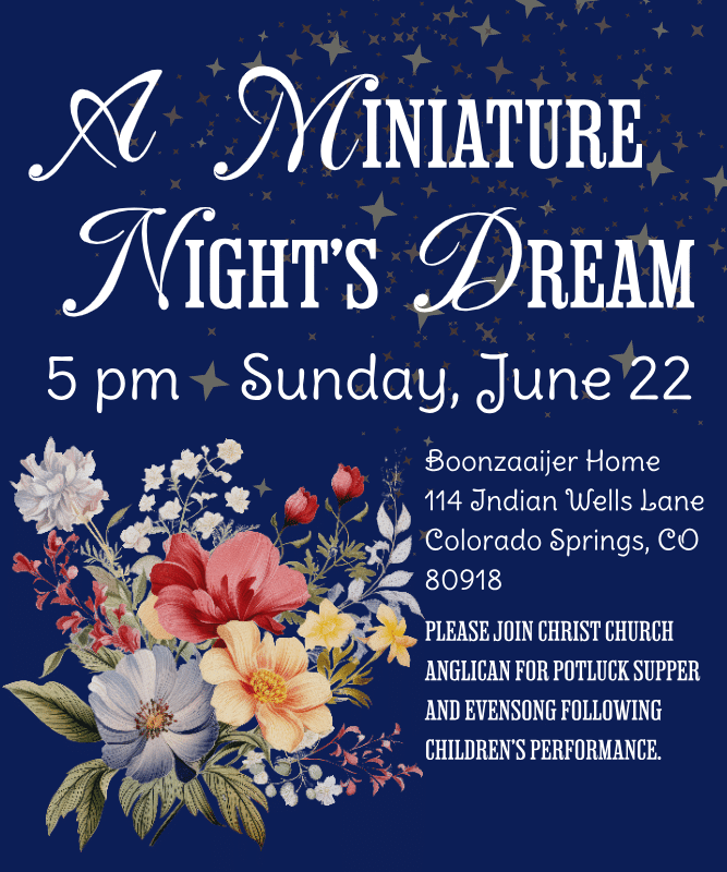 Join us for the children's performance of A Miniature Night's Dream followed by potluck supper and Evensong.